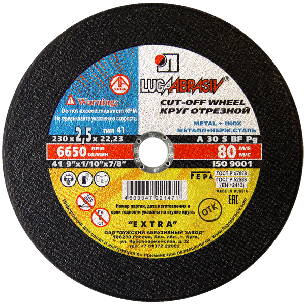 Диск абразивный отрезной по металлу Луга-Абразив Extra 230 x 2.5 x 22мм +нерж. (50/25шт.) - цена, фото, технические характеристики