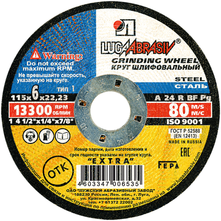 Диск абразивный шлифовальный по металлу Луга-Абразив Extra 115 x 6.0 x 22мм (80/10шт) - цена, фото, технические характеристики