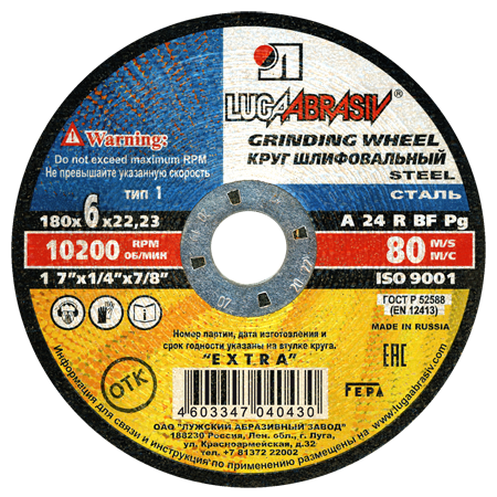 Диск абразивный шлифовальный по металлу Луга-Абразив Extra 180 x 6.0 x 22мм (40/10шт) - цена, фото, технические характеристики