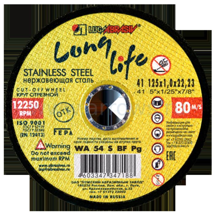 Диск абразивный шлифовальный по металлу Луга-Абразив Long Life 230 x 6.0 x 22мм + нерж. (20/10шт.) - цена, фото, технические характеристики