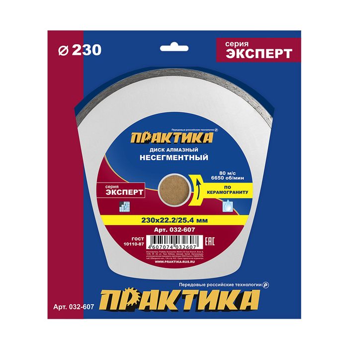 Диск алмазный несегментный ПРАКТИКА "Эксперт-керамогранит" 230 х 25,4/22,2 мм (032-607) - цена, фото, технические характеристики