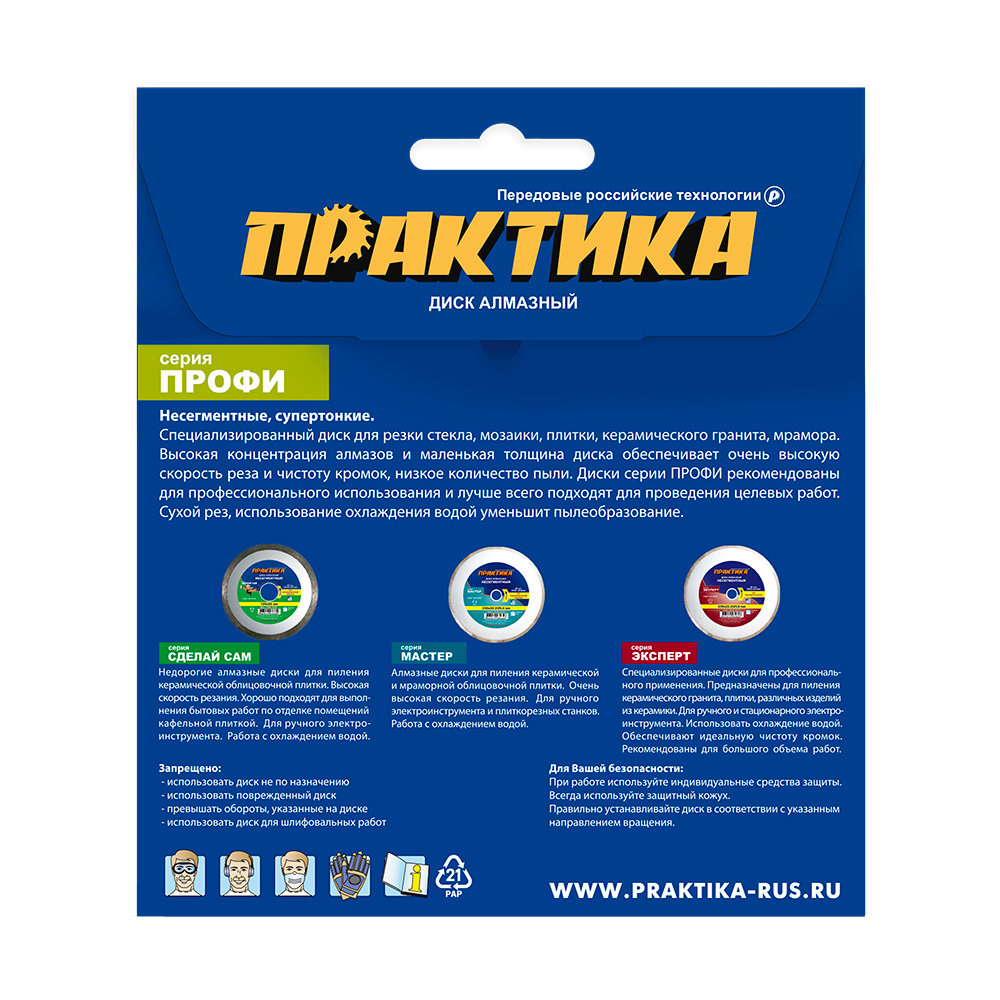 Диск алмазный несегментный ПРАКТИКА "Профи-Мозаика" 125 х 22 х 10 мм, толщина 1,7мм (917-018) - цена, фото, технические характеристики