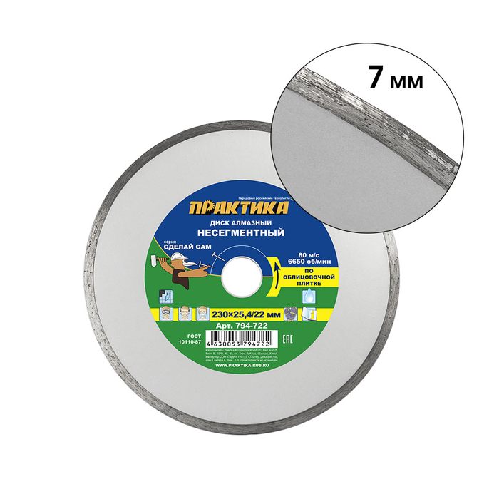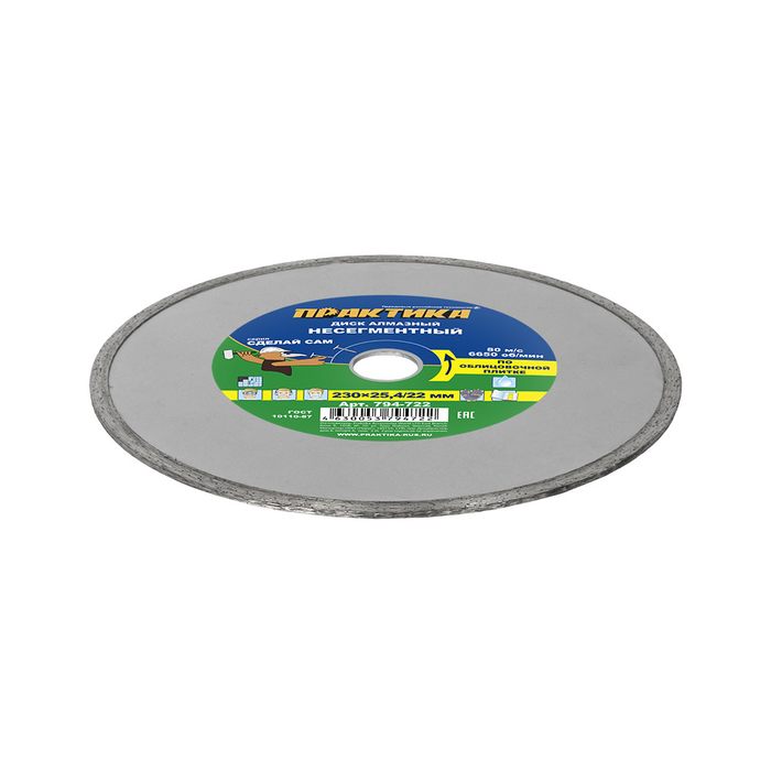 Диск алмазный несегментный ПРАКТИКА "Сделай Сам" 230 х 25,4/22,2 мм (1 шт.) кратно 5 шт (в пленке) (794-722) - цена, фото, технические характеристики