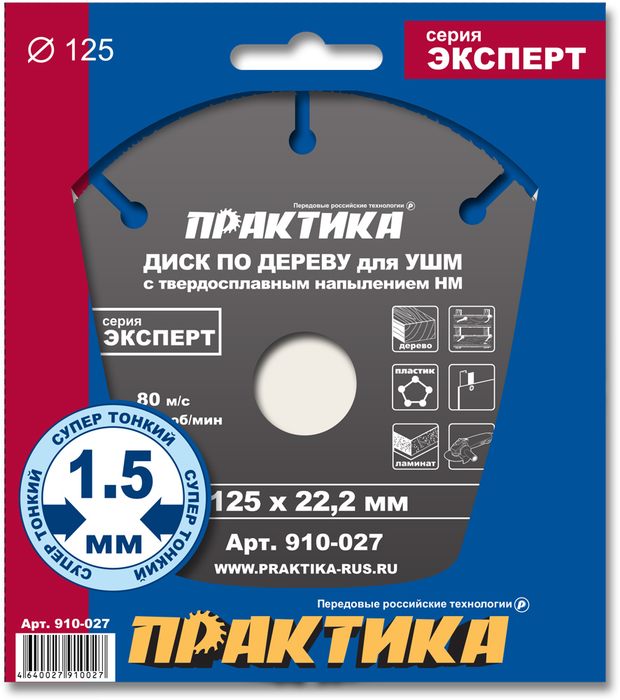 Диск по дереву с твердосплавным зерном ПРАКТИКА 125 х 22,2 мм для УШМ (910-027) для УШМ (910-027)
