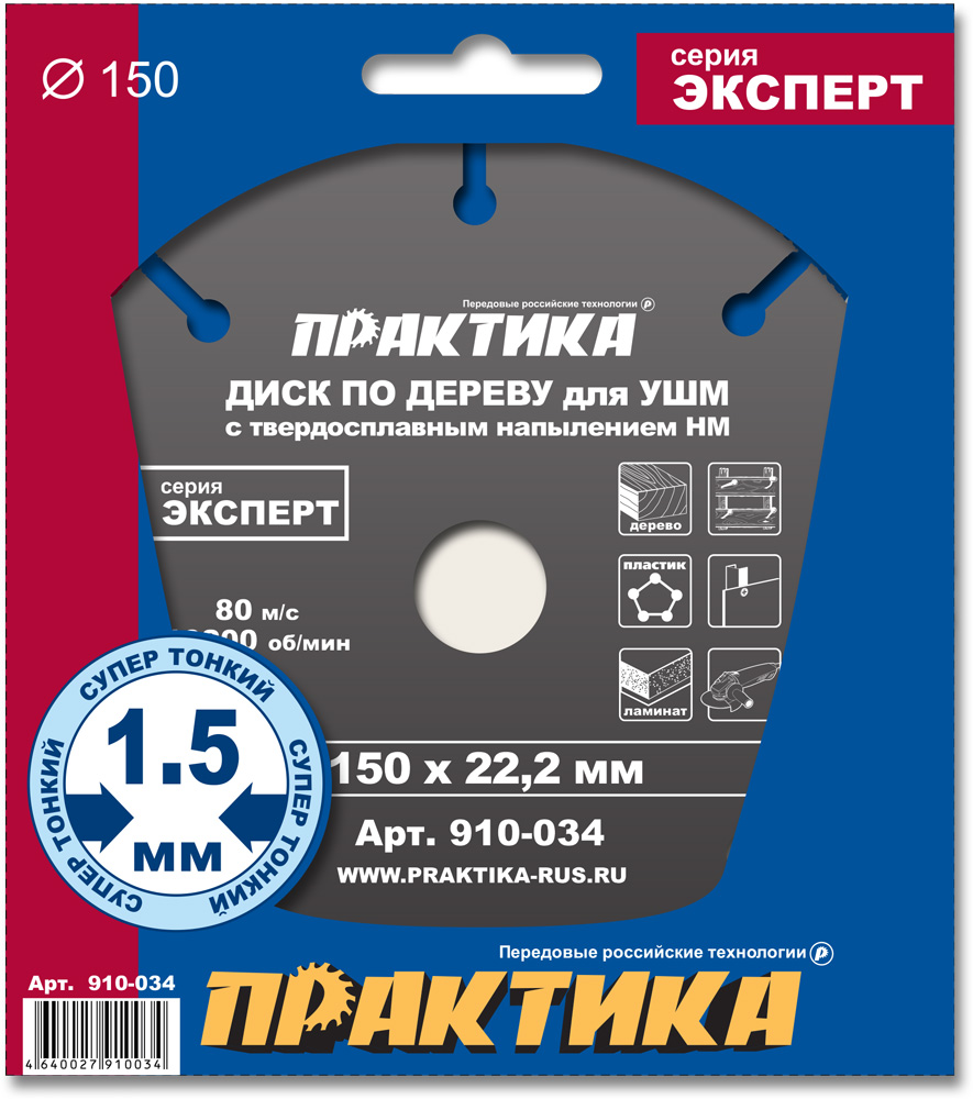 Диск по дереву с твердосплавным зерном ПРАКТИКА 150 х 22 мм для УШМ (910-034) - цена, фото, технические характеристики