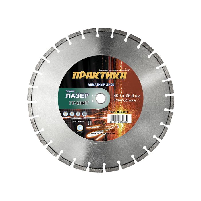 Диск алмазный сегментный ПРАКТИКА "Лазер-20-Гранит" 400 х 25,4 мм, сегмент 10мм (030-030) - цена, фото, технические характеристики