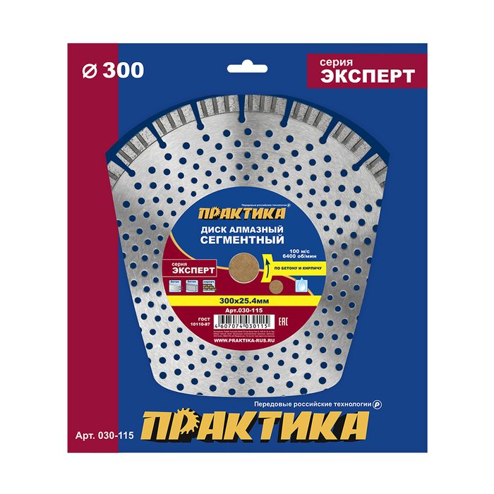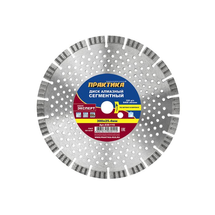 Диск алмазный турбосегментный ПРАКТИКА "Эксперт-Бетон" 300 х 25,4 мм, сегмент 10мм (030-115) - цена, фото, технические характеристики
