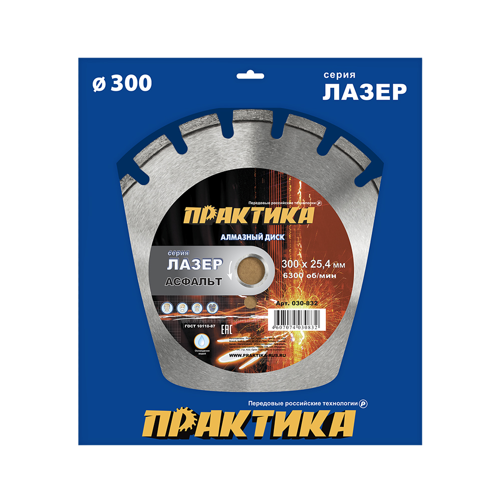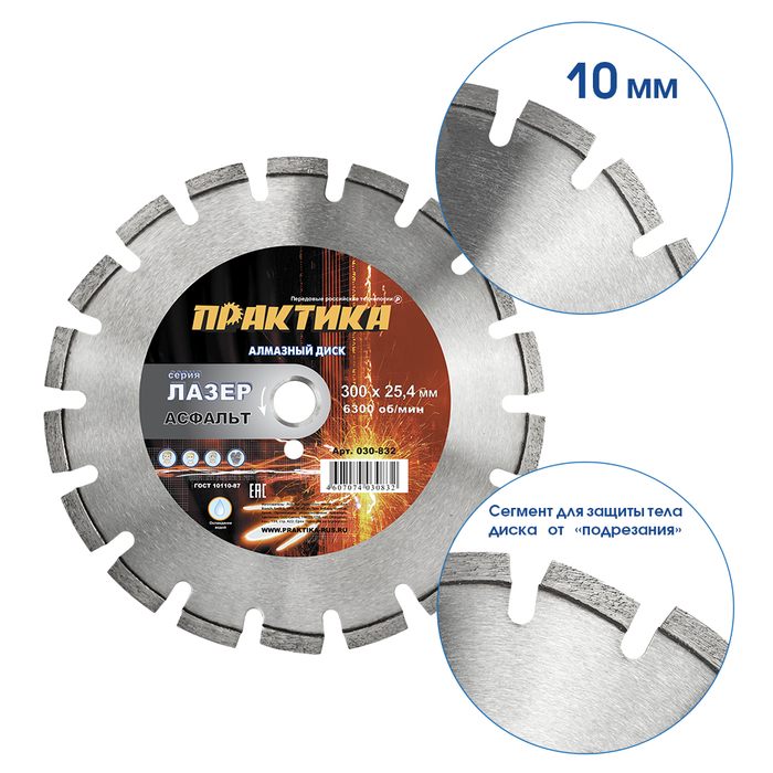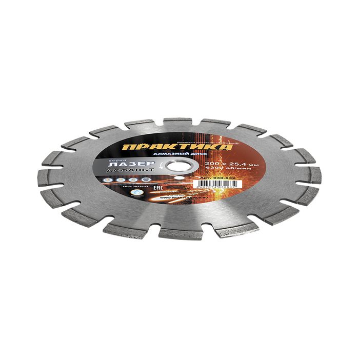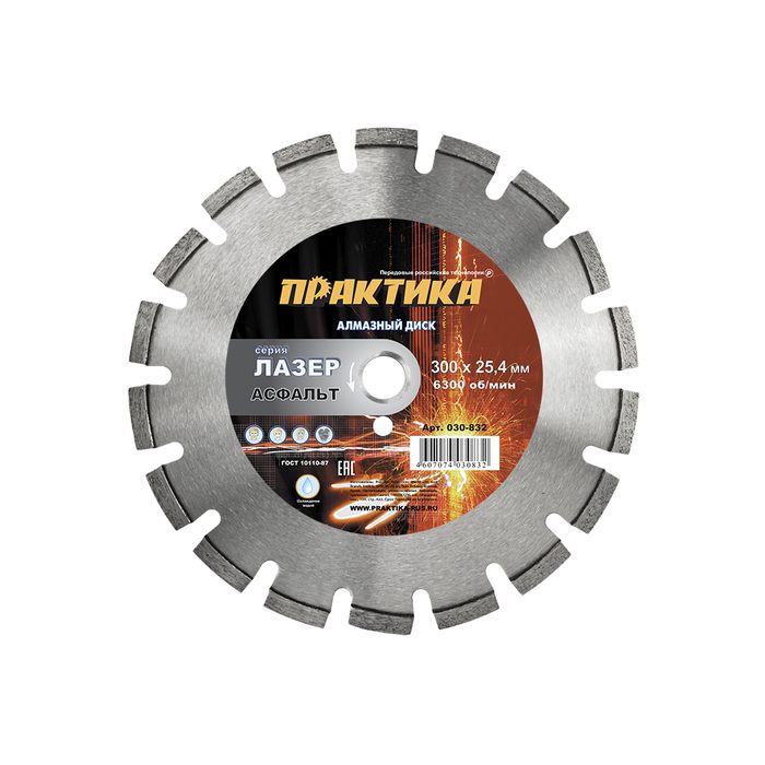Диск алмазный сегментный ПРАКТИКА "Лазер-90-Асфальт" 300 х 25,4 мм, сегмент 10мм (030-832) - цена, фото, технические характеристики