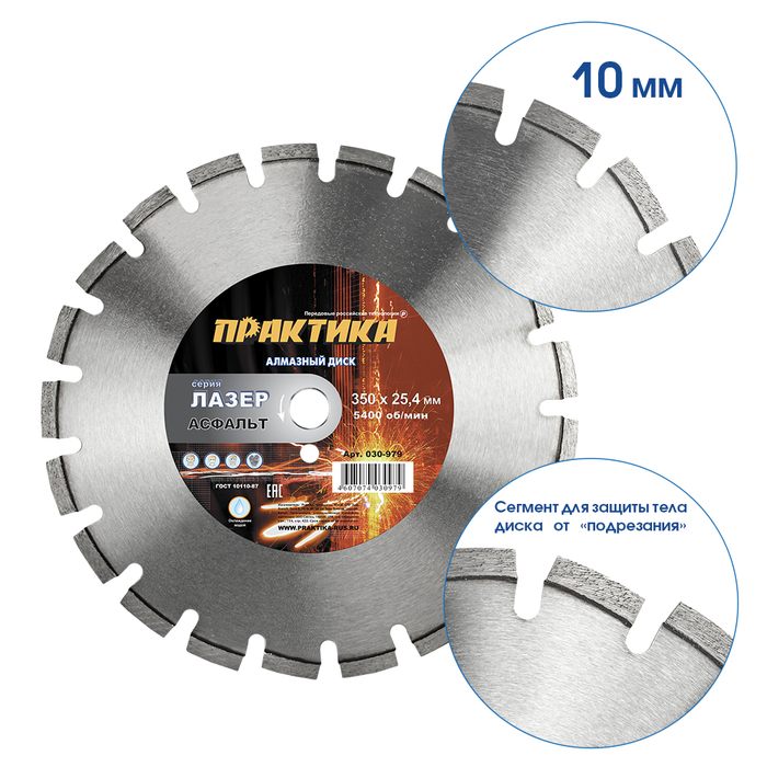 Диск алмазный сегментный ПРАКТИКА "Лазер-90-Асфальт" 350 х 25,4 мм, сегмент 10мм (030-979) - цена, фото, технические характеристики