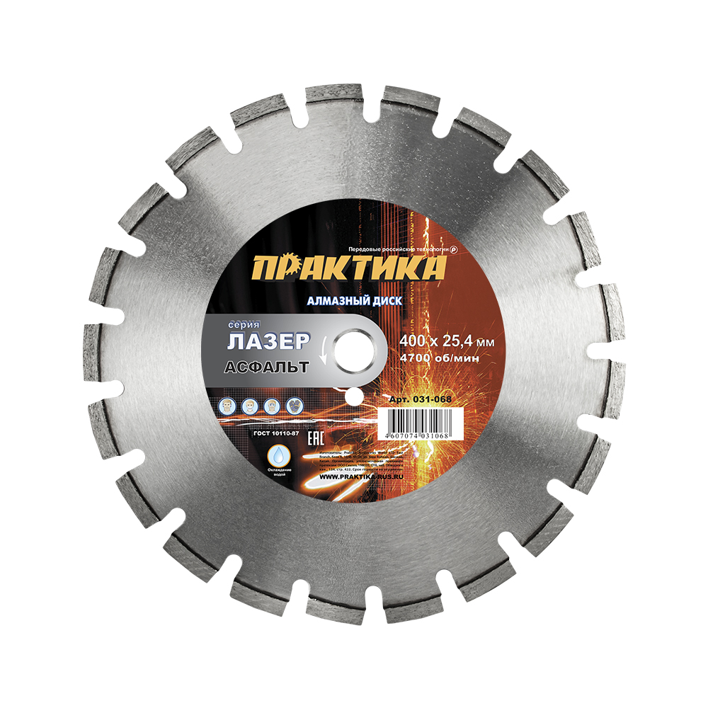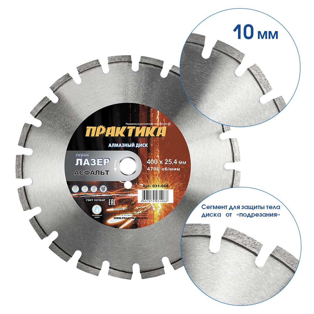 Диск алмазный сегментный ПРАКТИКА "Лазер-90-Асфальт" 400 х 25,4 мм, сегмент 10мм (031-068) - цена, фото, технические характеристики