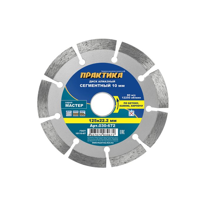 Диск алмазный сегментный ПРАКТИКА "Мастер" 125 х 22,2 мм (030-672) - цена, фото, технические характеристики