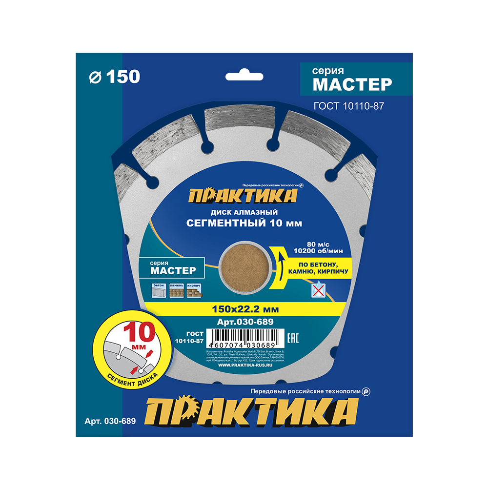 Диск алмазный сегментный ПРАКТИКА "Мастер" 150 х 22 мм (030-689) - цена, фото, технические характеристики