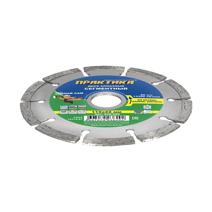 Диск алмазный сегментный ПРАКТИКА "Сделай Сам" 115 х 22 мм (1 шт.) кратно 5 шт (в пленке) (036-292) - цена, фото, технические характеристики