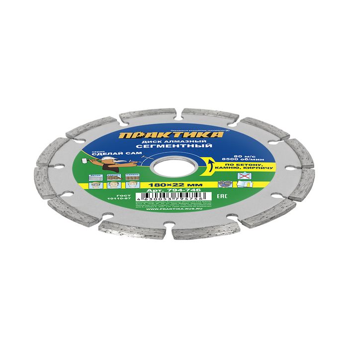 Диск алмазный сегментный ПРАКТИКА "Сделай Сам" 180 х 22,2 мм (1 шт.) кратно 5 шт (в пленке) (794-746) - цена, фото, технические характеристики