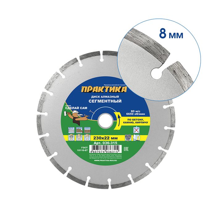 Диск алмазный сегментный ПРАКТИКА "Сделай Сам" 230 х 22 мм (1 шт.) кратно 5 шт (в пленке) (036-315) - цена, фото, технические характеристики