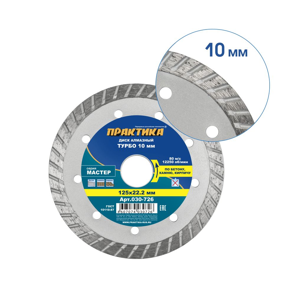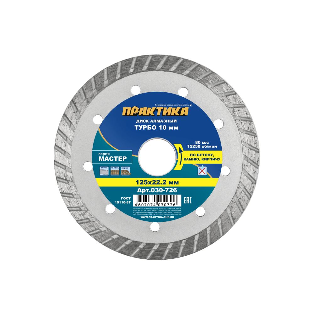 Диск алмазный турбированный ПРАКТИКА "Мастер" 125 х 22 мм (030-726) - цена, фото, технические характеристики