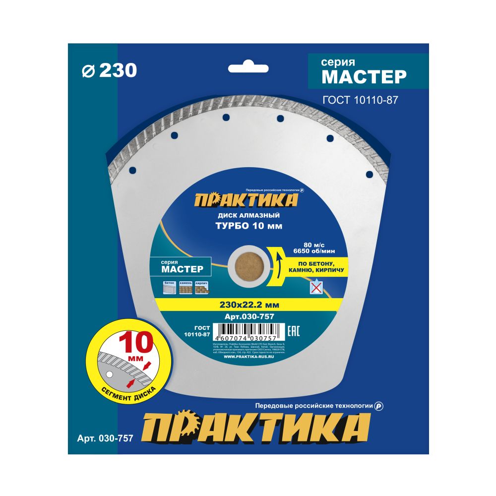 Диск алмазный турбированный ПРАКТИКА "Мастер" 230 х 22 мм (030-757) - цена, фото, технические характеристики