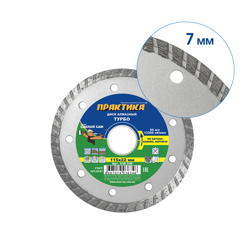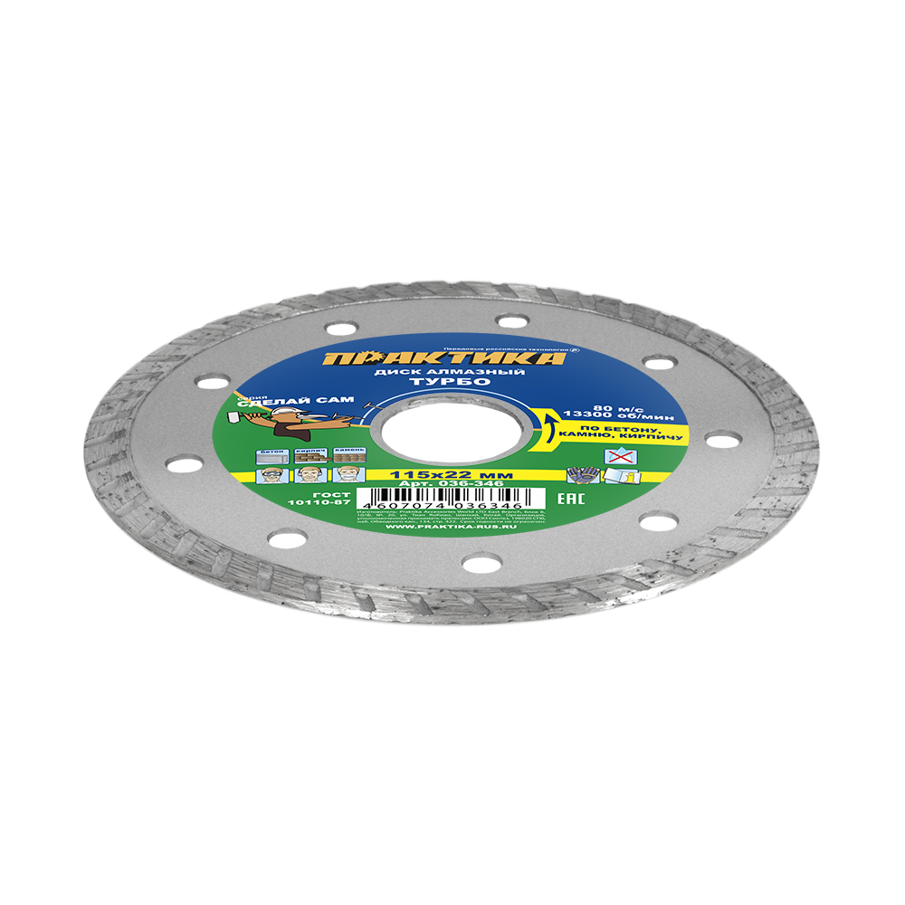 Диск алмазный турбированный ПРАКТИКА "Сделай Сам" 115 х 22 мм (1 шт.) кратно 5 шт (в пленке) (036-346) - цена, фото, технические характеристики