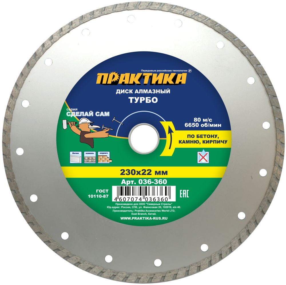 Диск алмазный турбированный ПРАКТИКА "Сделай Сам" 230 х 22 мм (1 шт.) кратно 5 шт (в пленке) (036-360) - цена, фото, технические характеристики