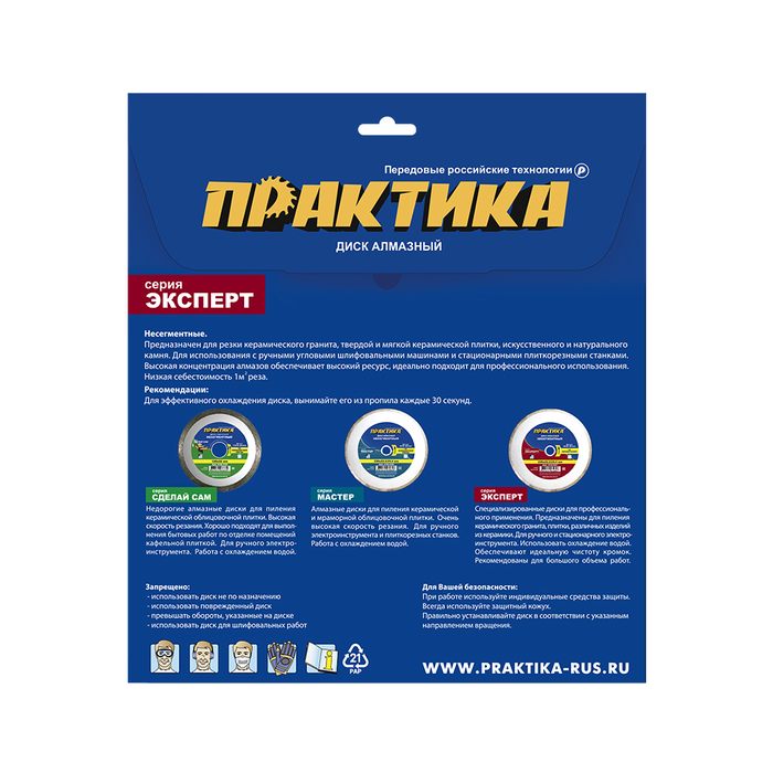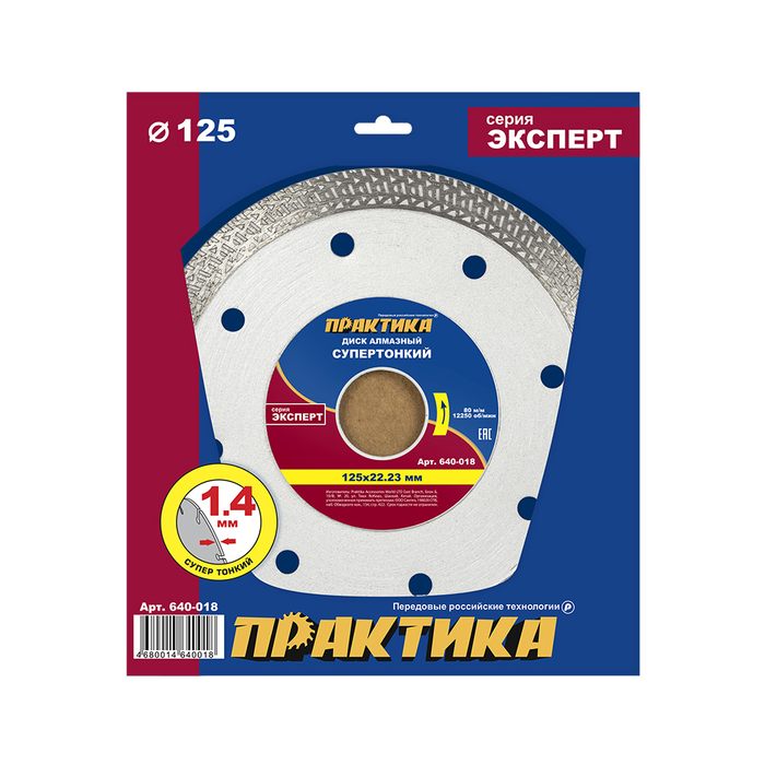 Диск алмазный турбированный ПРАКТИКА "Эксперт" Супертонкий 125 х 22,2 мм, толщина 1,4 мм, по керамограниту (640-018) - цена, фото, технические характеристики