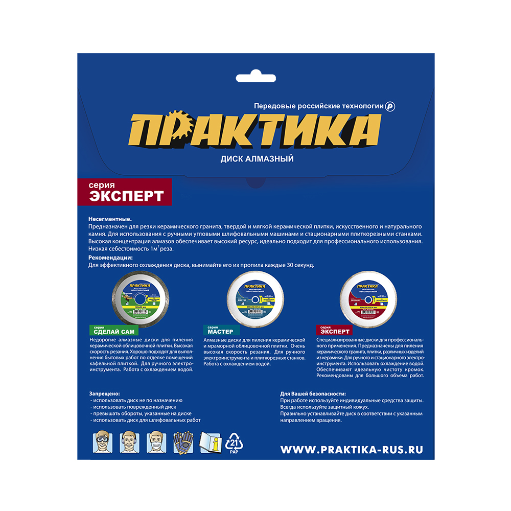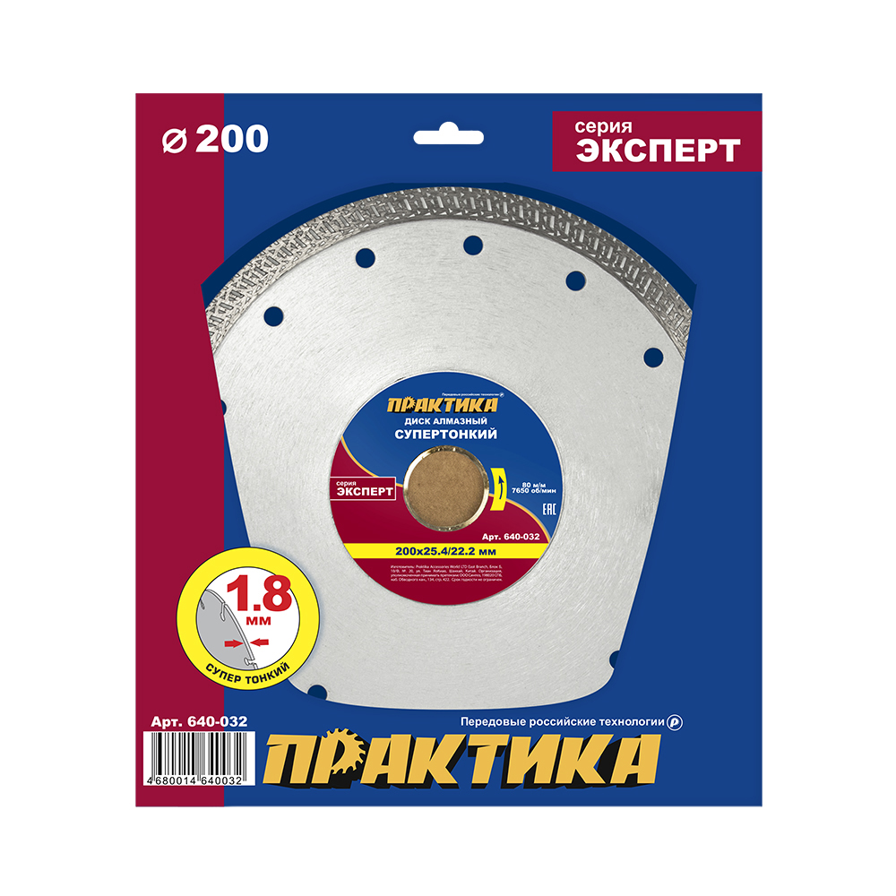 Диск алмазный турбированный ПРАКТИКА "Супер тонкий" 200 х 25,4/22 мм, толщина 1,8 мм, по керамограниту, (1 шт.) (640-032) - цена, фото, технические характеристики