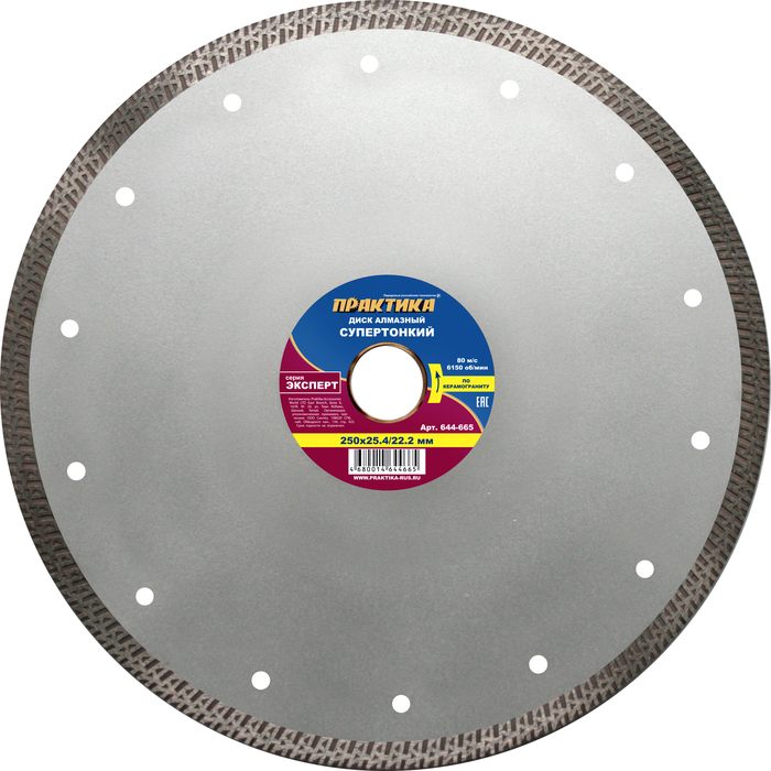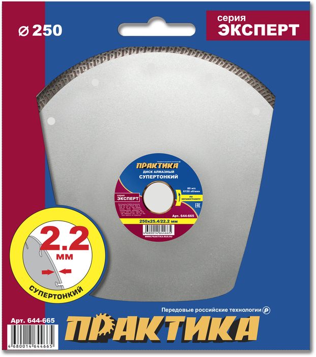 Диск алмазный турбированный ПРАКТИКА "Эксперт" Супертонкий 250 х 25,4/22,2 мм, толщина 2,2 мм, по керамограниту (644-665) - цена, фото, технические характеристики