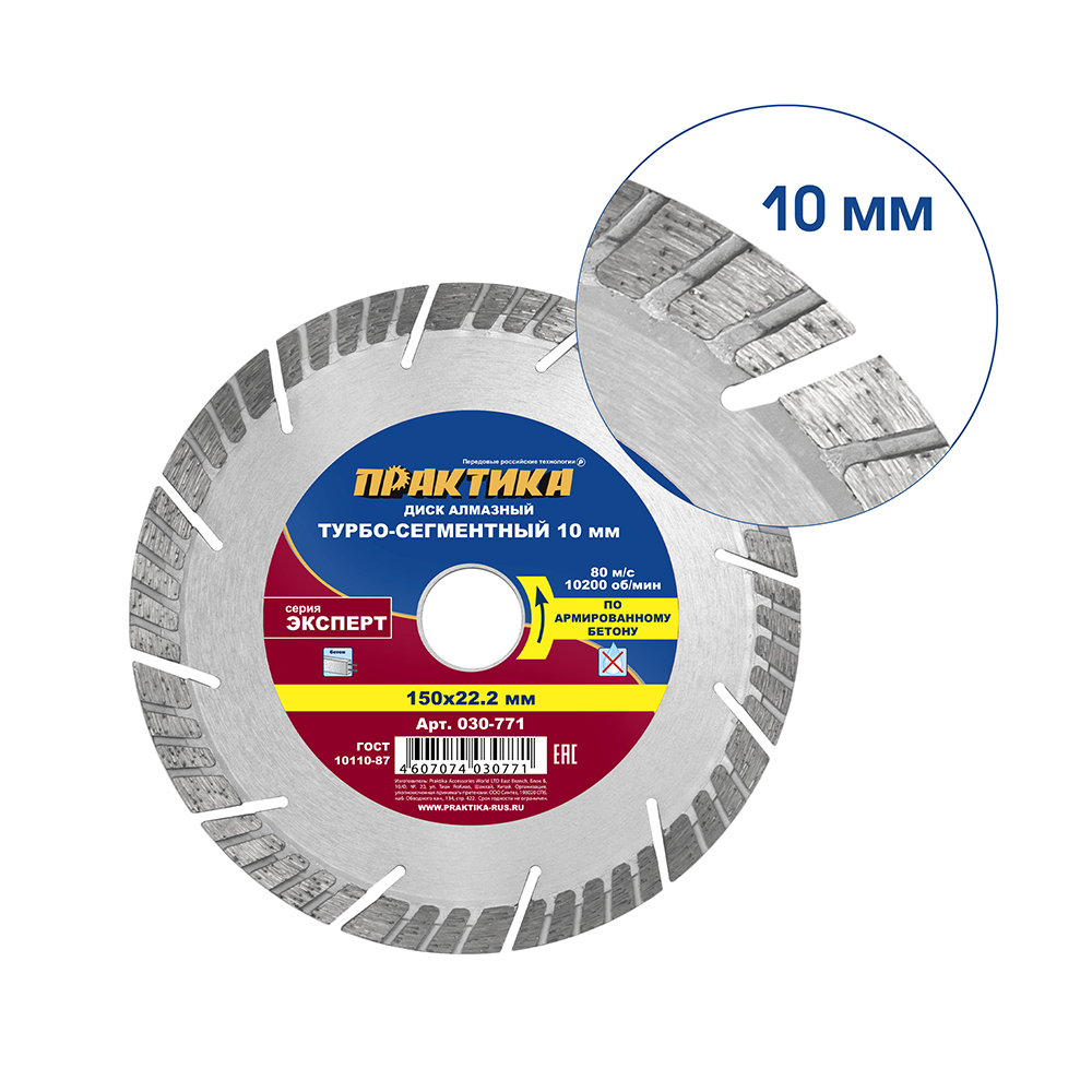Диск алмазный турбосегментный ПРАКТИКА "Эксперт-бетон" 150 х 22 мм, сегмент 10мм (030-771) - цена, фото, технические характеристики