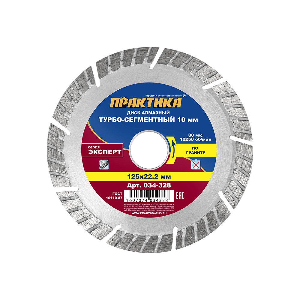 Диск алмазный турбосегментный ПРАКТИКА "Эксперт-гранит" 125 х 22 мм, сегмент 10мм (034-328) - цена, фото, технические характеристики