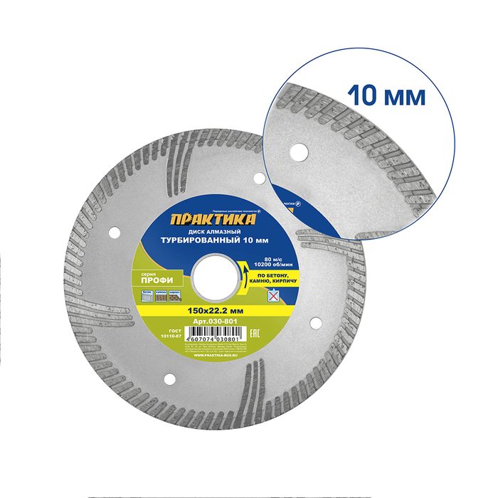 Диск алмазный турбированный ПРАКТИКА "Профи" 150 х 22,2 мм, сегмент 10мм (030-801) - цена, фото, технические характеристики