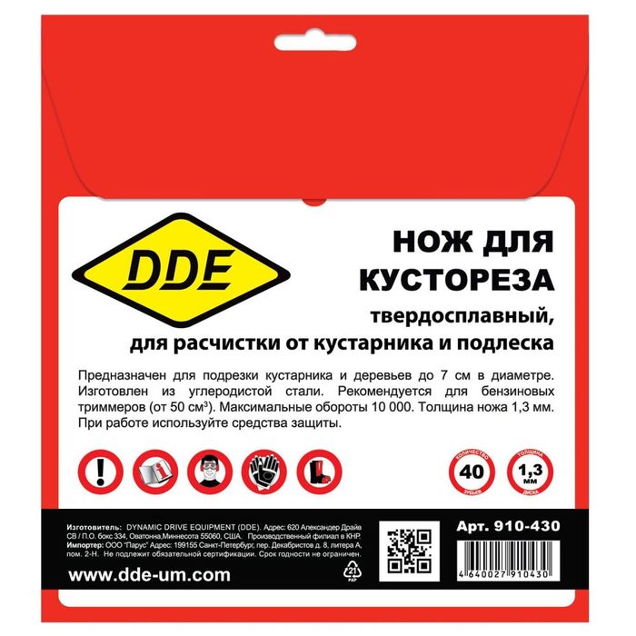 Нож для кустореза DDE WOOD CUT (225 х 25,4/20 x 1,3 мм, твердосплавный, 40 зубьев) - цена, фото, технические характеристики