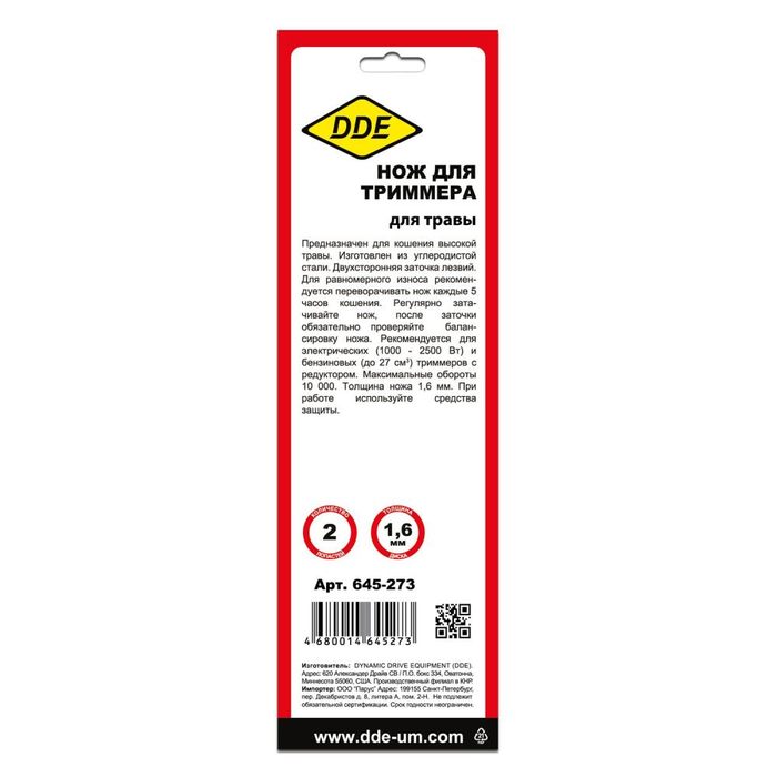 Нож для триммера DDE GRASS CUT (255 х 25,4 x 1,6 мм, 2-х лопастной) - цена, фото, технические характеристики