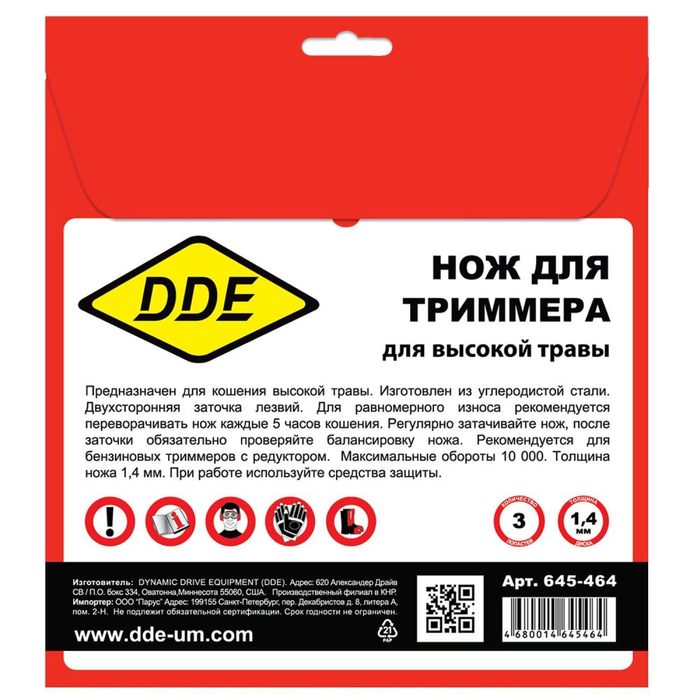 Нож для триммера DDE GRASS CUT (255 х 25,4 x 1,4 мм, 3-х лопастной) - цена, фото, технические характеристики