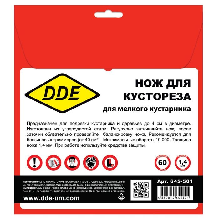 Нож для триммера DDE WOOD CUT (230 х 25,4 x 1,4 мм, 60 зубьев) - цена, фото, технические характеристики