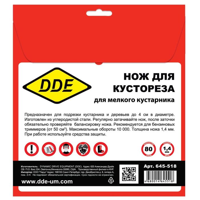 Нож для триммера DDE WOOD CUT (255 х 25,4 x 1,4 мм, 80 зубьев) - цена, фото, технические характеристики