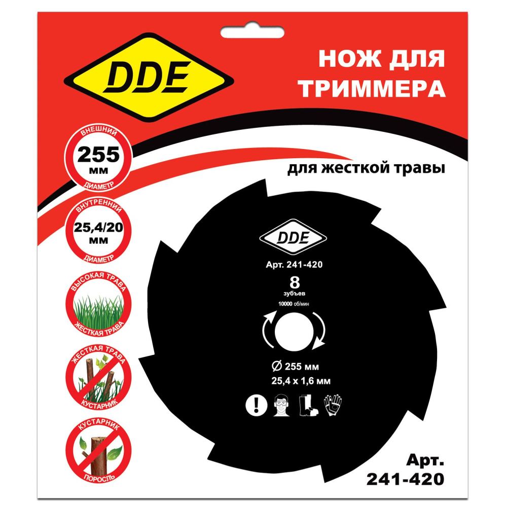 Нож для триммера DDE GRASS CUT (255 х 25,4/20 x 1,6 мм, 8 зубьев) - цена, фото, технические характеристики