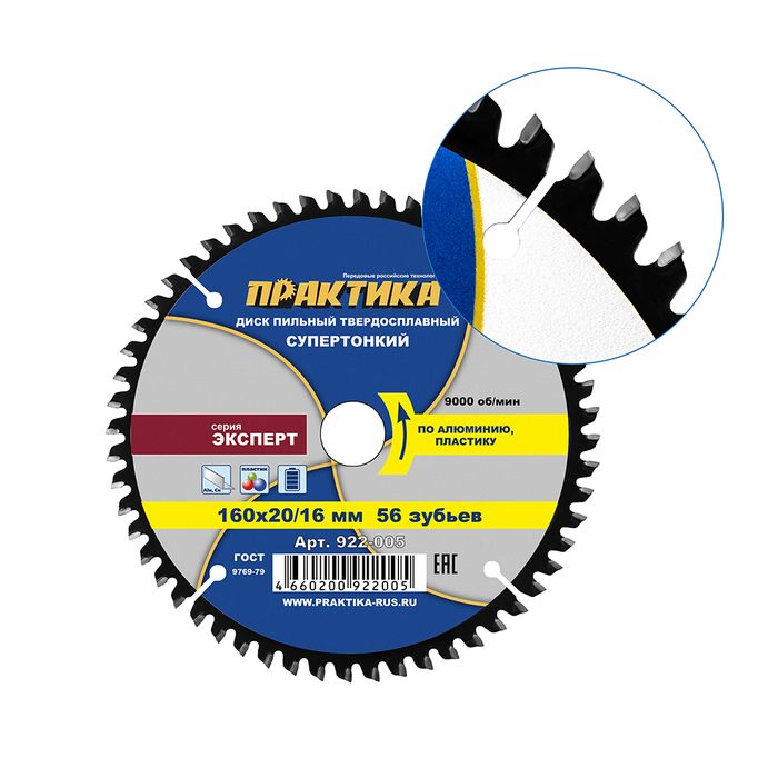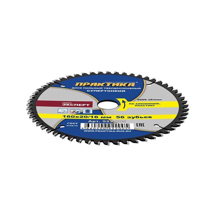 Диск пильный твердосплавный по алюминию ПРАКТИКА 160 х 20\16 мм, ТОНКИЙ, 56 зубьев (922-005) - цена, фото, технические характеристики