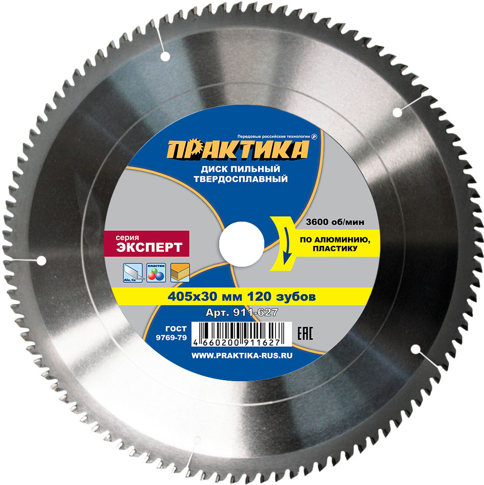 Диск пильный твердосплавный по алюминию ПРАКТИКА 405 х 30 мм, 120 зубьев (911-627) - цена, фото, технические характеристики