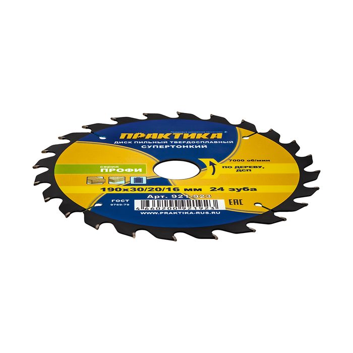 Диск пильный твердосплавный по дереву, ДСП ПРАКТИКА 190 х 30\20\16 мм, ТОНКИЙ, 24 зуба (921-923) - цена, фото, технические характеристики