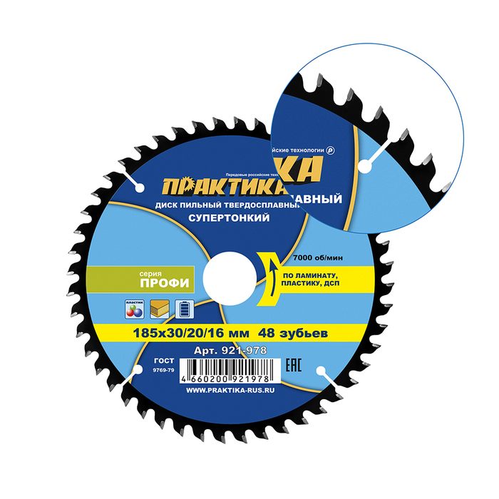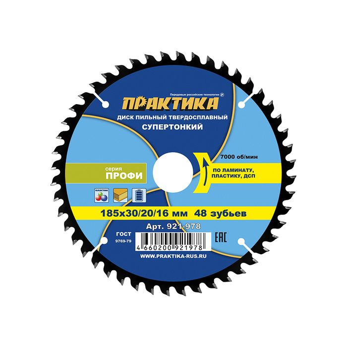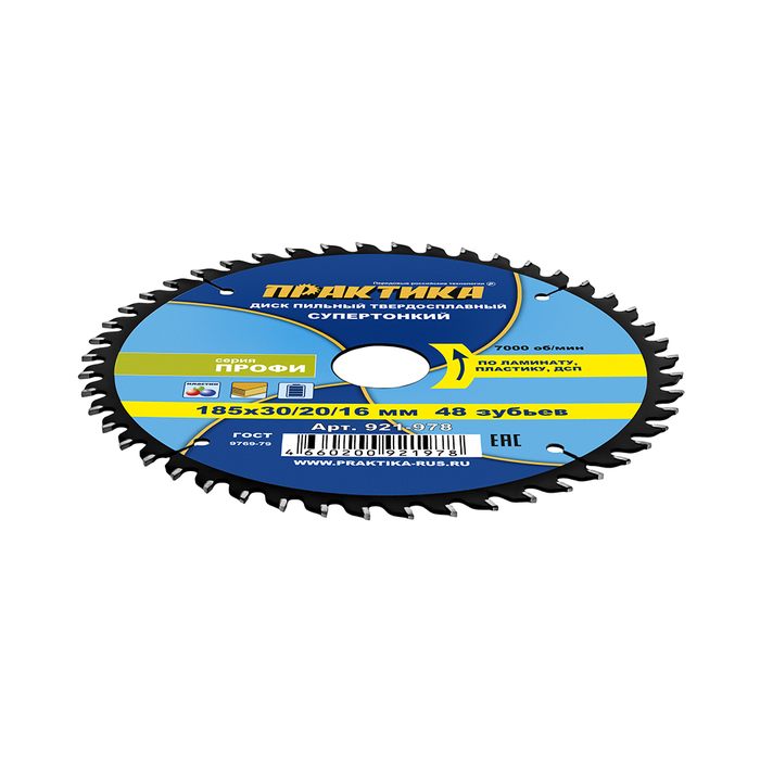 Диск пильный твердосплавный по ламинату ПРАКТИКА 185 х 30\20\16 мм, ТОНКИЙ, 48 зубьев (921-978) - цена, фото, технические характеристики