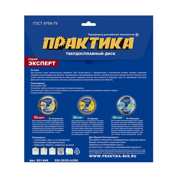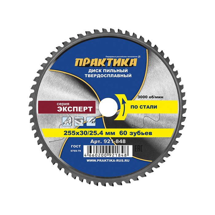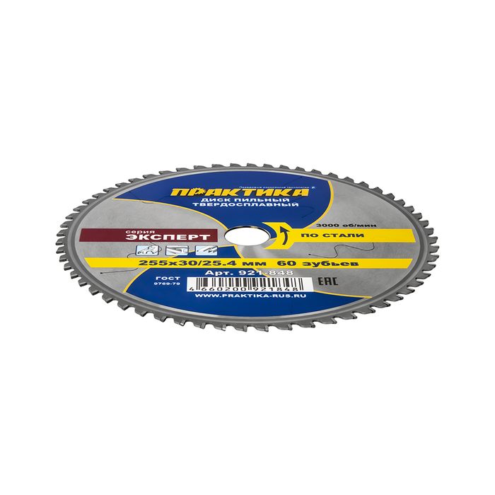 Диск пильный твердосплавный по стали ПРАКТИКА 255 х 30\25,4 мм, 60 зубьев (921-848) - цена, фото, технические характеристики