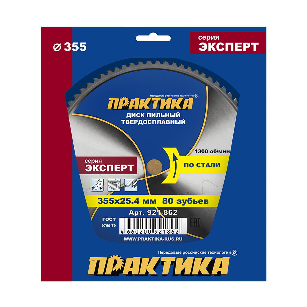 Диск пильный твердосплавный по стали ПРАКТИКА 355 х 25,4 мм, 80 зубьев (921-862) - цена, фото, технические характеристики