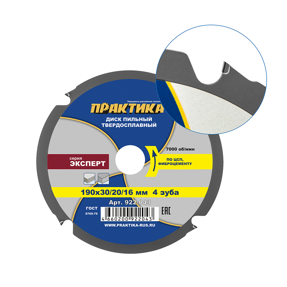 Диск пильный твердосплавный по ЦСП и фиброцементу ПРАКТИКА 190 х 30\20\16 мм, 4 зуба (922-043) - цена, фото, технические характеристики