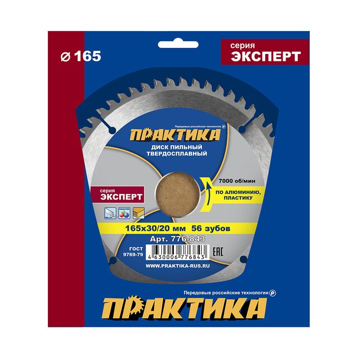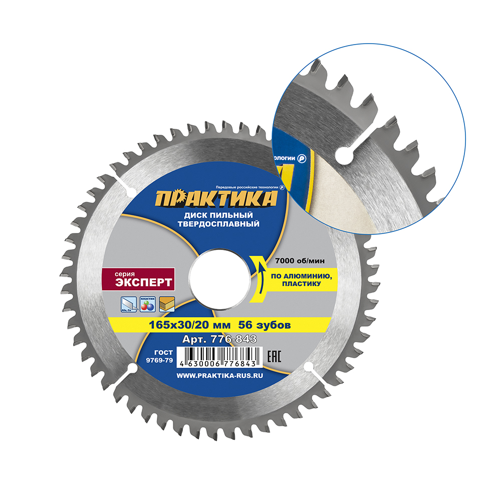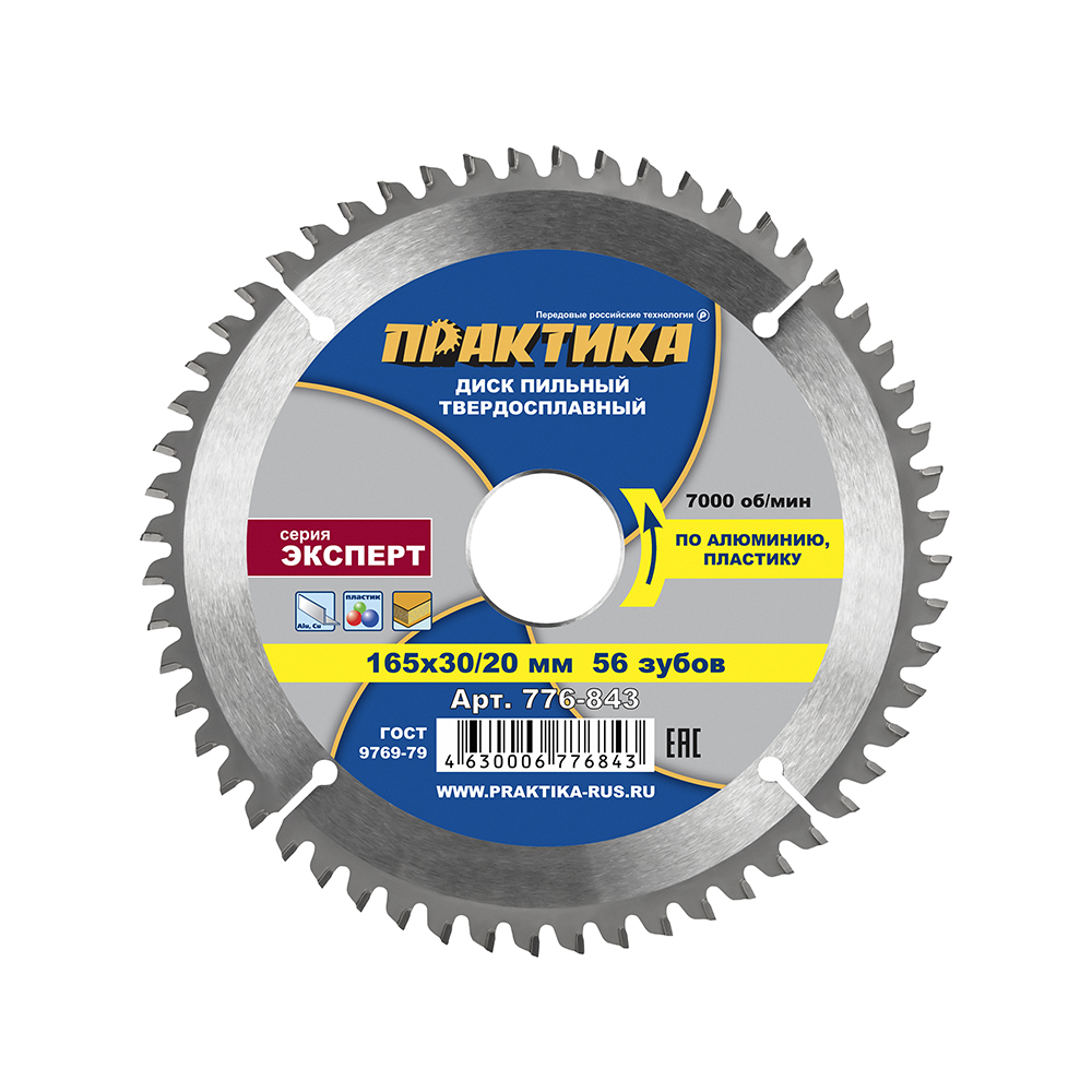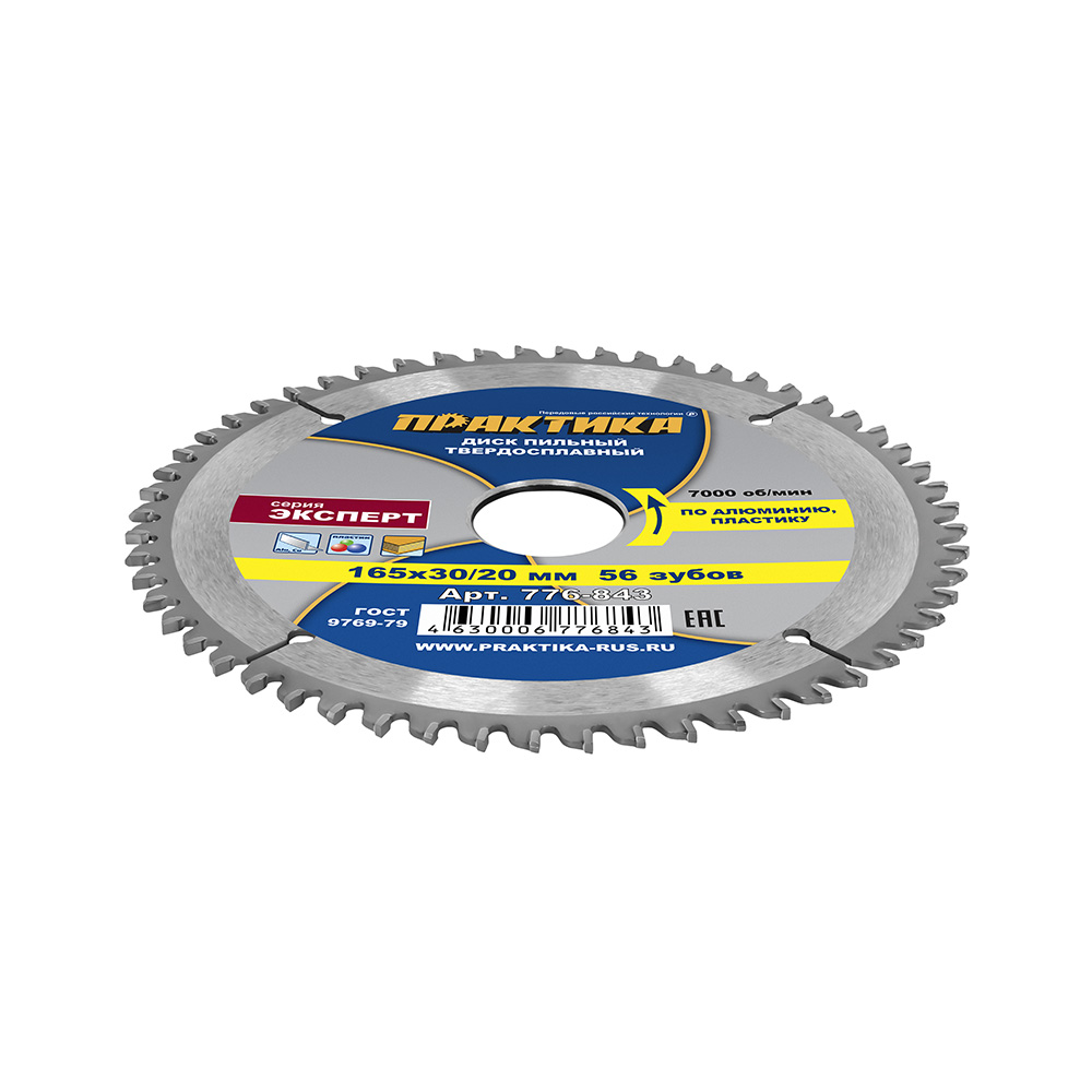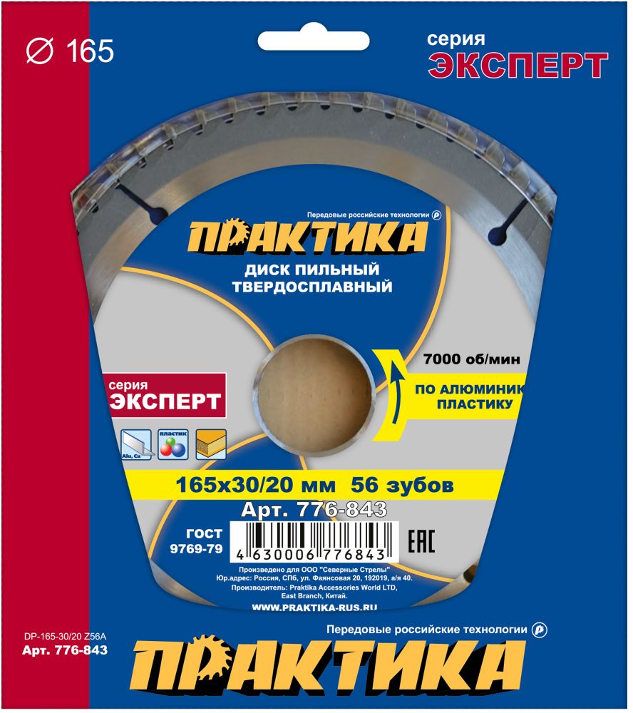 Диск пильный твердосплавный по алюминию ПРАКТИКА 165 х 30\20 мм, 56 зубьев (776-843) - цена, фото, технические характеристики