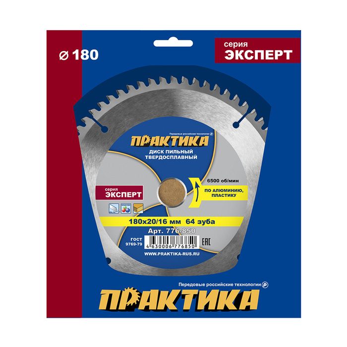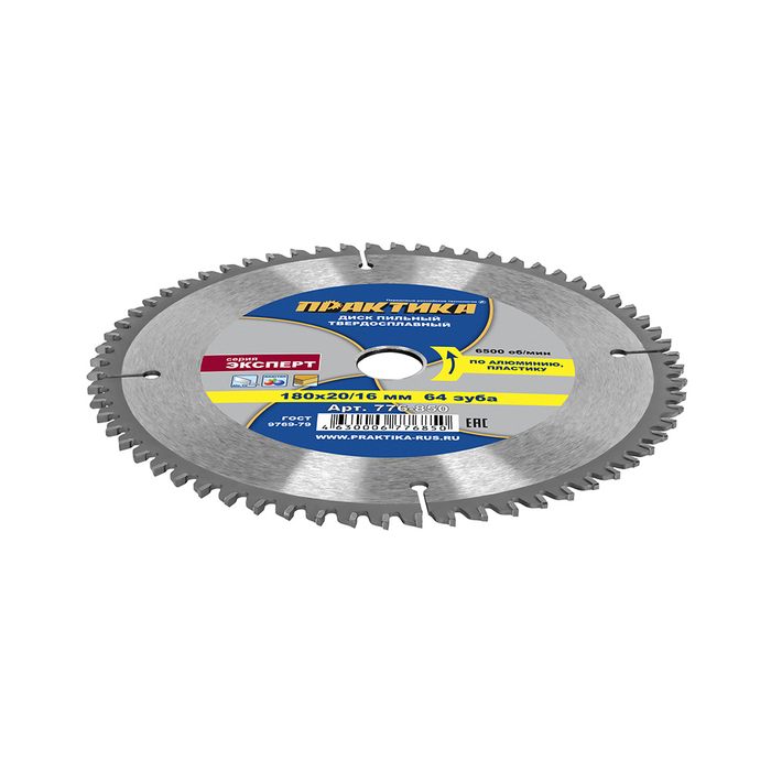 Диск пильный твердосплавный по алюминию ПРАКТИКА 180 х 20\16 мм, 64 зуба (776-850) - цена, фото, технические характеристики