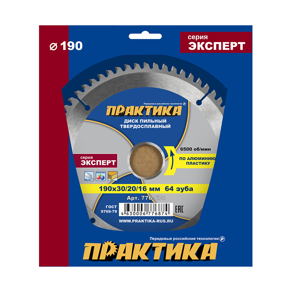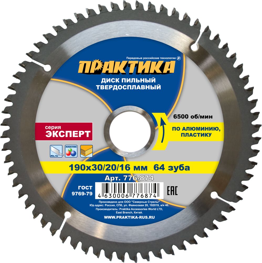 Диск пильный твердосплавный по алюминию ПРАКТИКА 190 х 30\20\16 мм, 64 зуба (776-874) - цена, фото, технические характеристики
