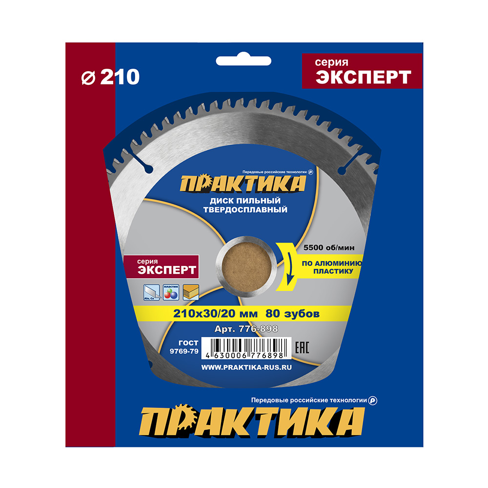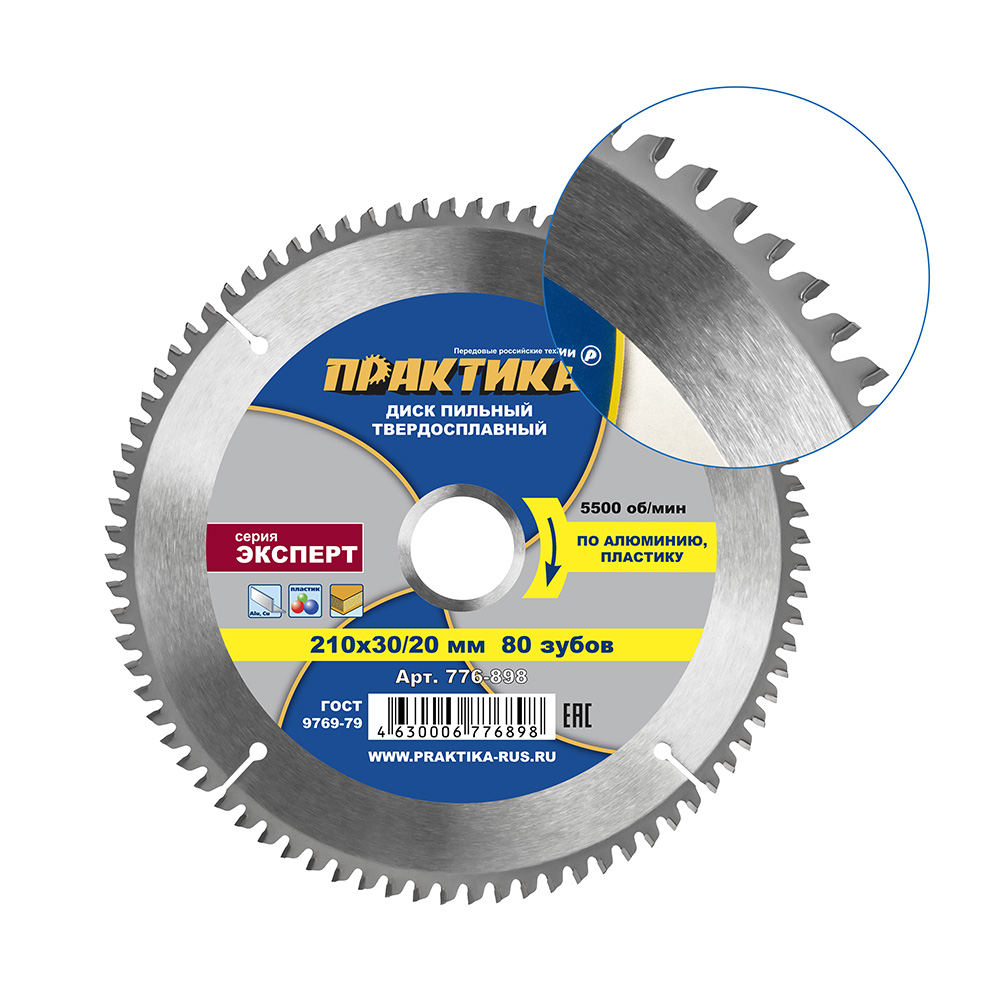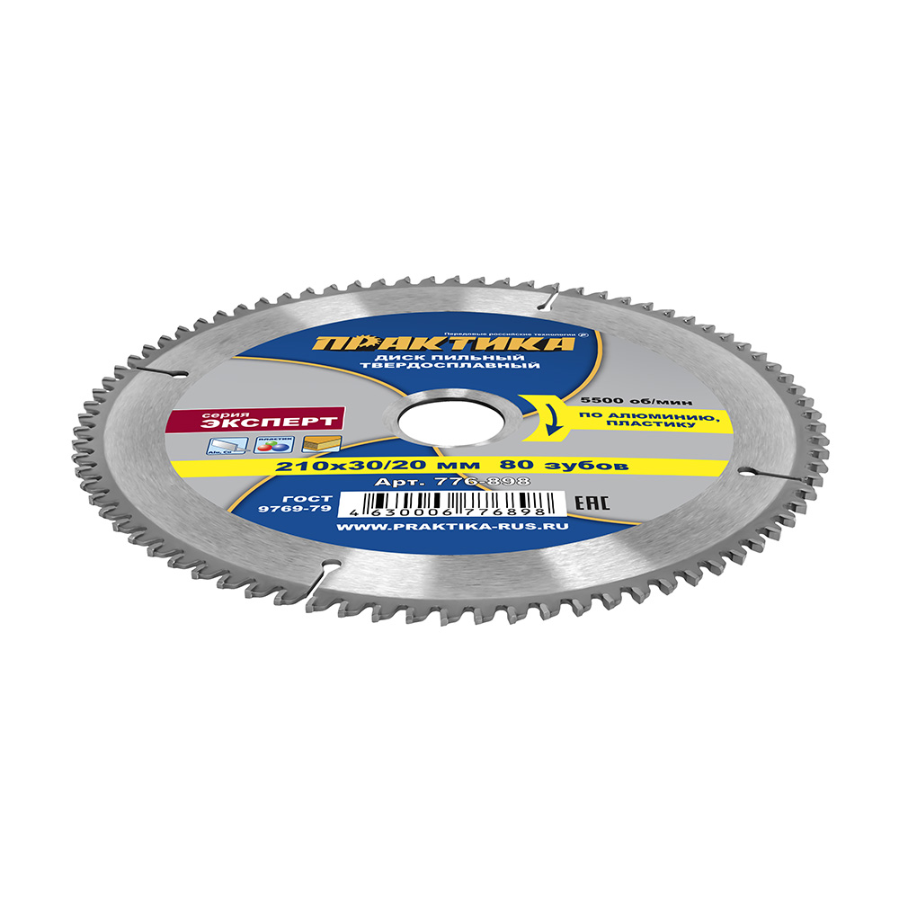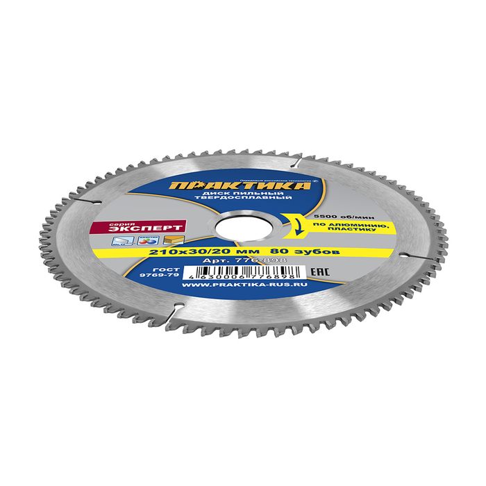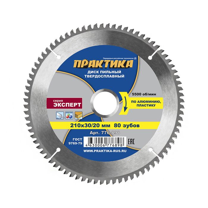 Диск пильный твердосплавный по алюминию ПРАКТИКА 210 х 30\20 мм, 80 зубьев (776-898) - цена, фото, технические характеристики