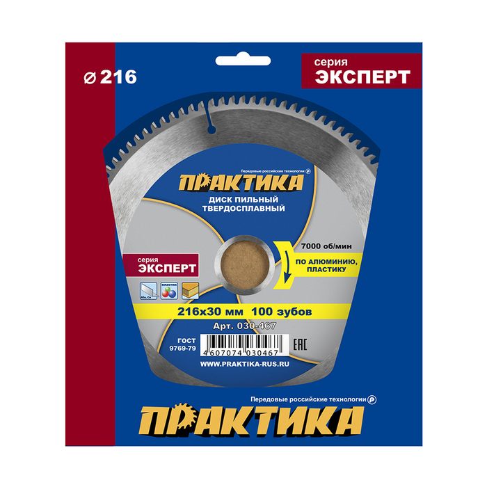 Диск пильный твердосплавный по алюминию ПРАКТИКА 216 х 30 мм, 100 зубьев (030-467) - цена, фото, технические характеристики