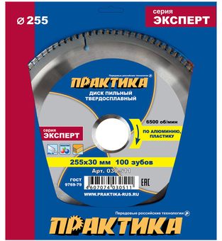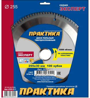 Диск пильный твердосплавный по алюминию ПРАКТИКА 255 х 30 мм, 100 зубьев (030-511) - цена, фото, технические характеристики