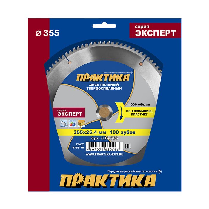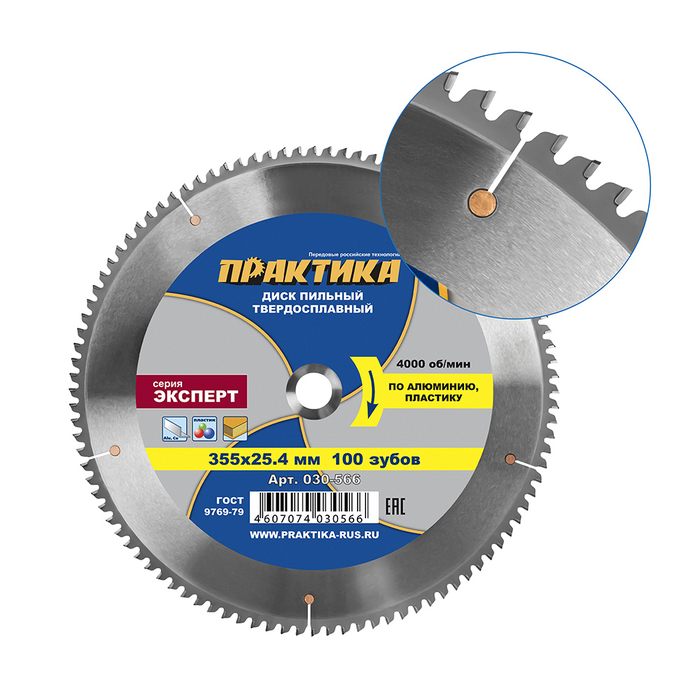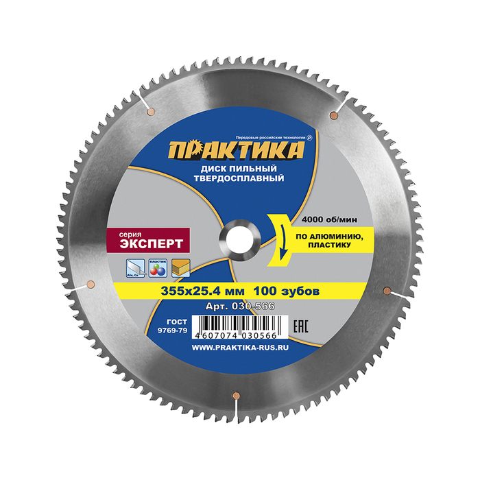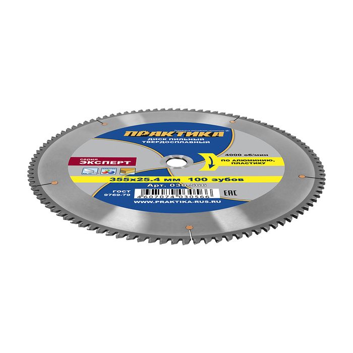 Диск пильный твердосплавный по алюминию ПРАКТИКА 355 х 25,4 мм, 100 зубьев (030-566) - цена, фото, технические характеристики