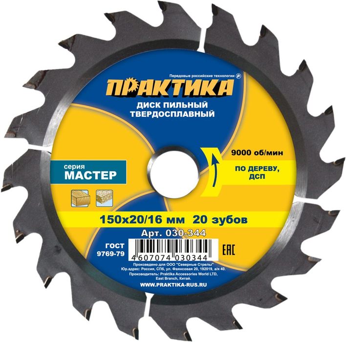 Диск пильный твердосплавный по дереву, ДСП ПРАКТИКА 150 х 20\16 мм, 20 зубьев (030-344) - цена, фото, технические характеристики